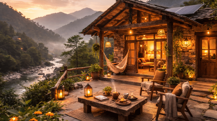 In Maharashtra’s countryside, farm stays are being built with reclaimed wood and locally sourced stone, blending naturally with the rural landscape.