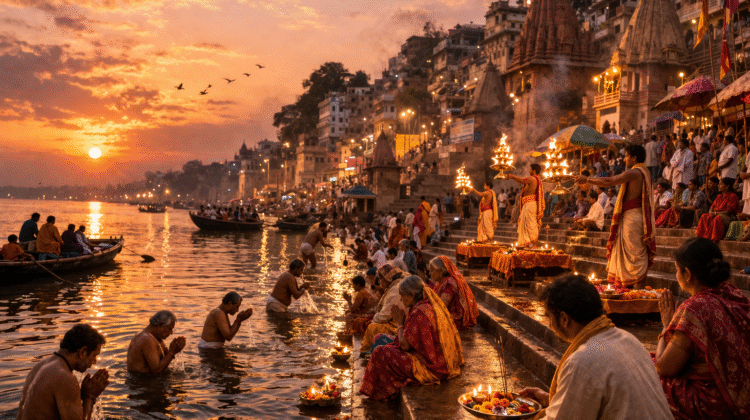 Varanasi dominates online engagement with nearly     2.8 million annual searches    —the highest of any religious destination globally . With     1,149 accommodations     (nearly double Kyoto’s offering), the city welcomed     72.6 million visitors in 2025     . The sacred Ganges River ghats, where pilgrims bathe to cleanse sins, make this Hinduism’s holiest city. Major festivals like Kumbh Mela and Ganga Dussehra multiply numbers into the tens of millions .
